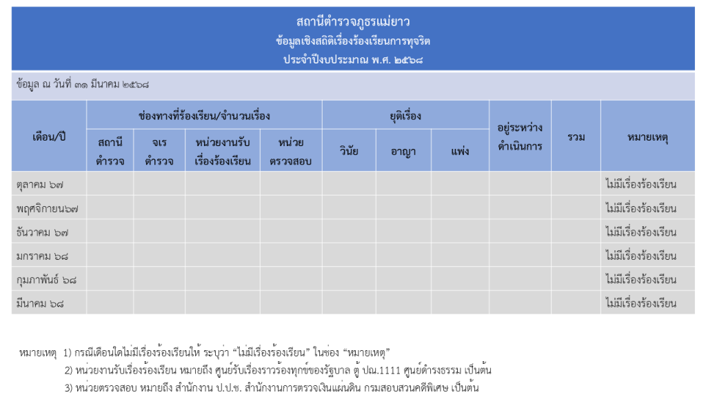 ข้อมูลเชิงสถิติเรื่องร้องเรียนการทุจริต